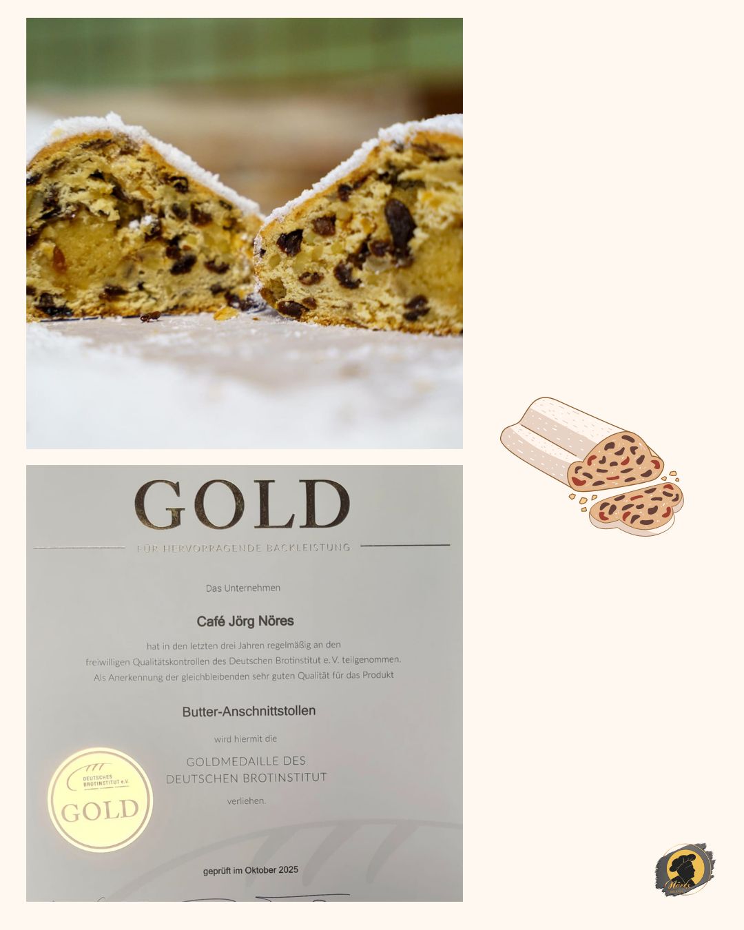 Unser Stollen ist mit der Goldmedallie des deutschen Brotinstituts ausgezeichnet.