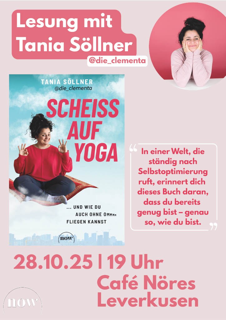 Am Dienstag, den 28. Oktober, verwandelt sich unser Café in eine kleine Bühne für große Gedanken: Autorin Tania Söllner liest aus ihrem Buch „Scheiss auf Yoga – … und wie du auch ohne Ommm fliegen kannst“.